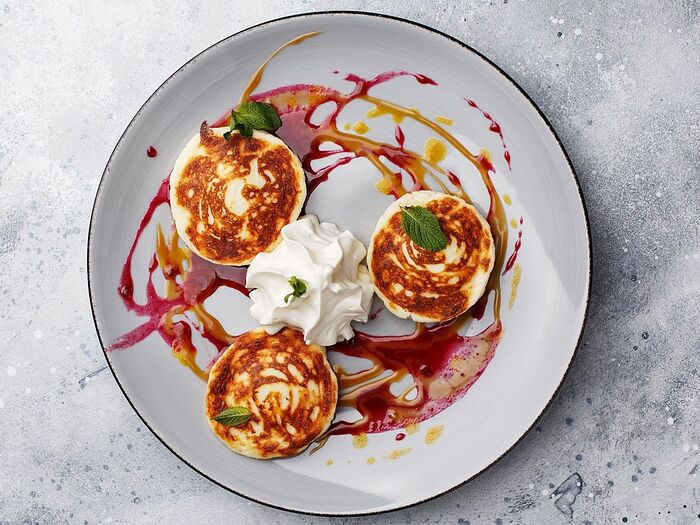 Сырники из рикотты со сметаной и вареньем
