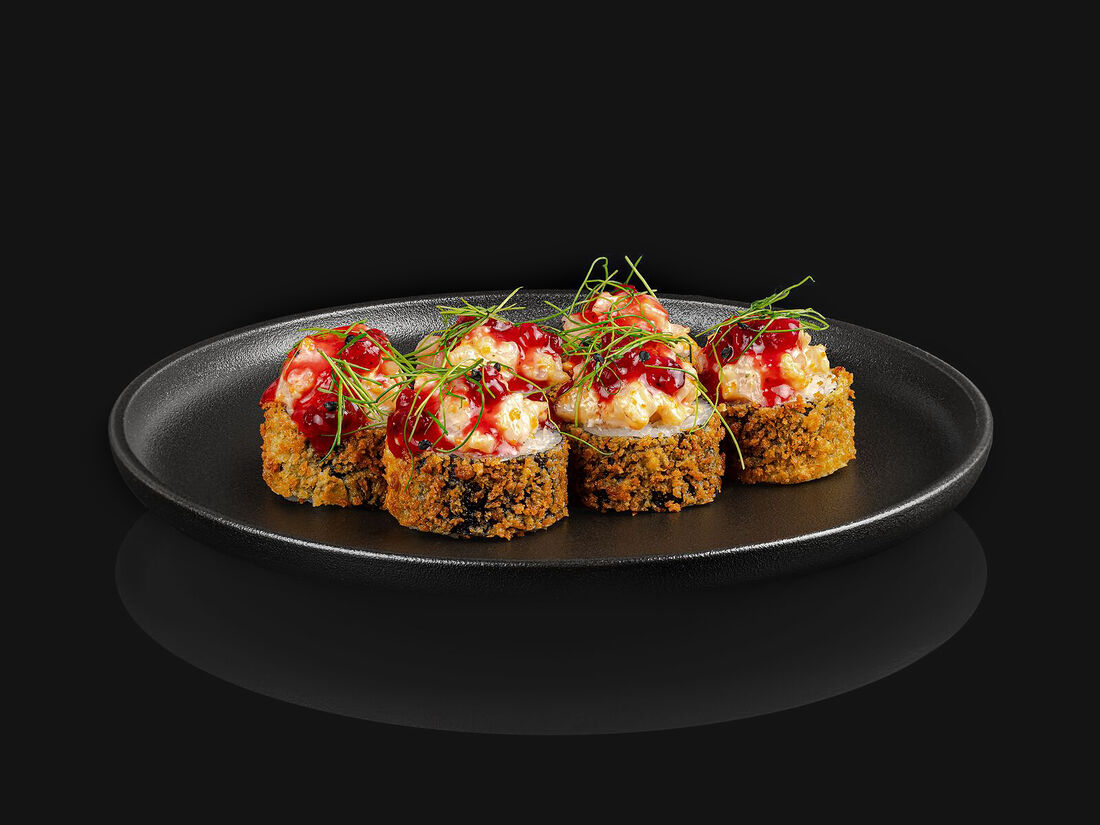 Темпура с лососем и брусничным соусом