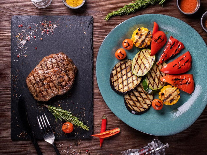 Лосось гриль на овощной подушке