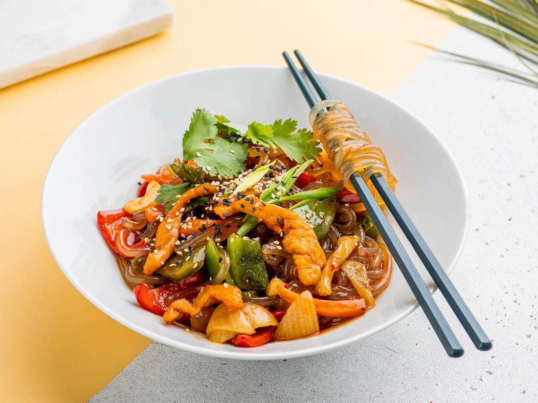 Стекляная лапша с курицей в тайском соусе