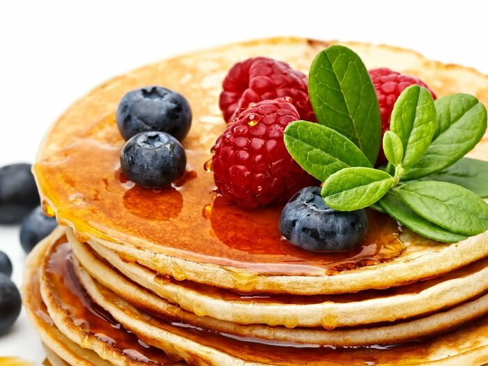 Блины: малина и творог и мед