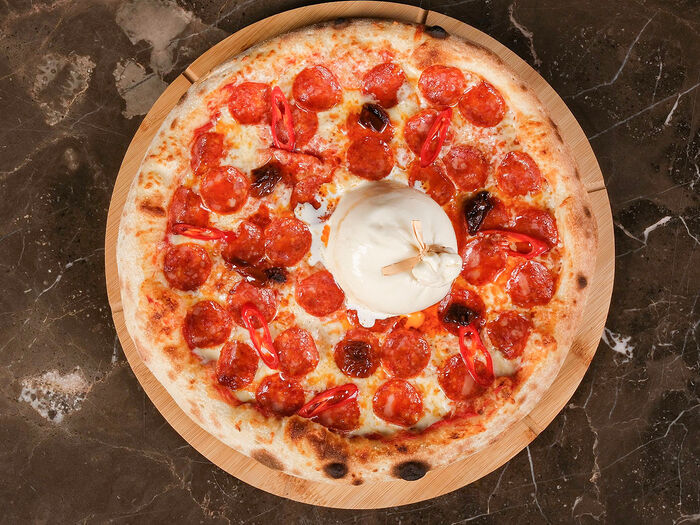 Фирменная пицца Дьяволо с Бураттой