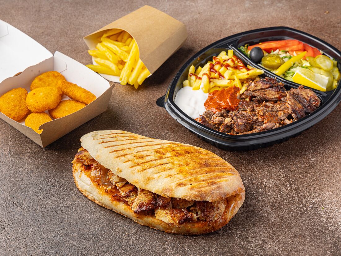 Шаурма на тарелке с курицей