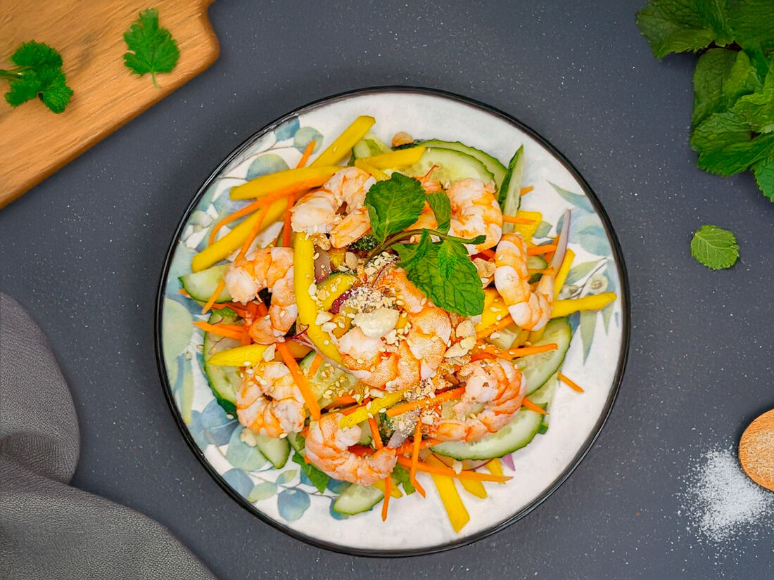 Салат с манго и креветками