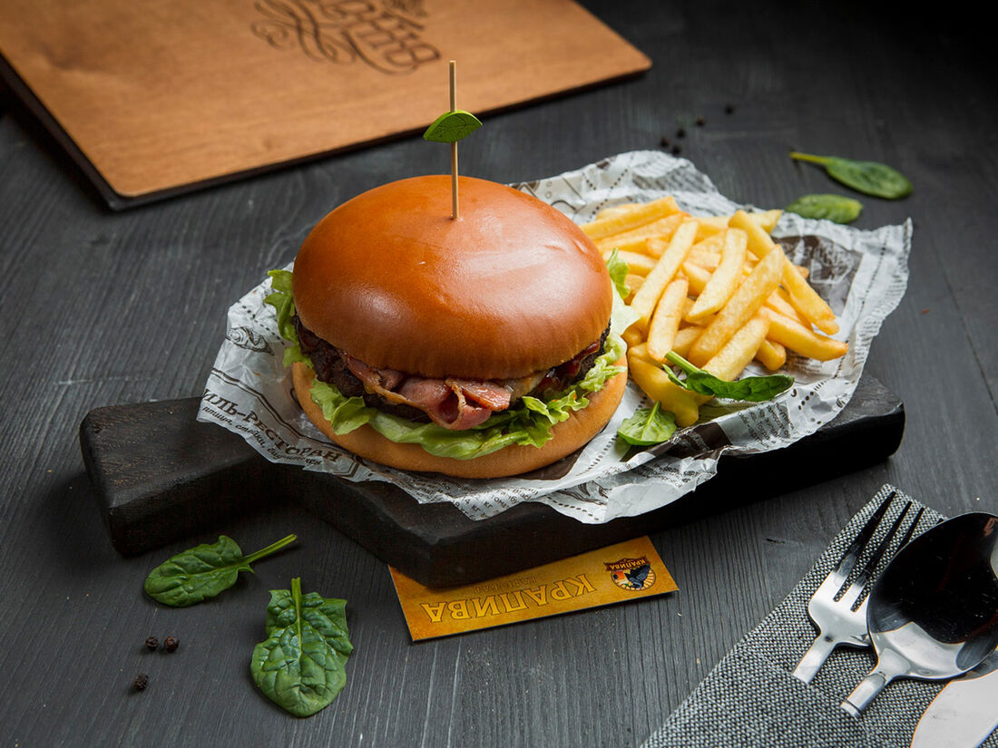 Бургер Беконайзер с говяжьей котлетой и беконом + картофель фри