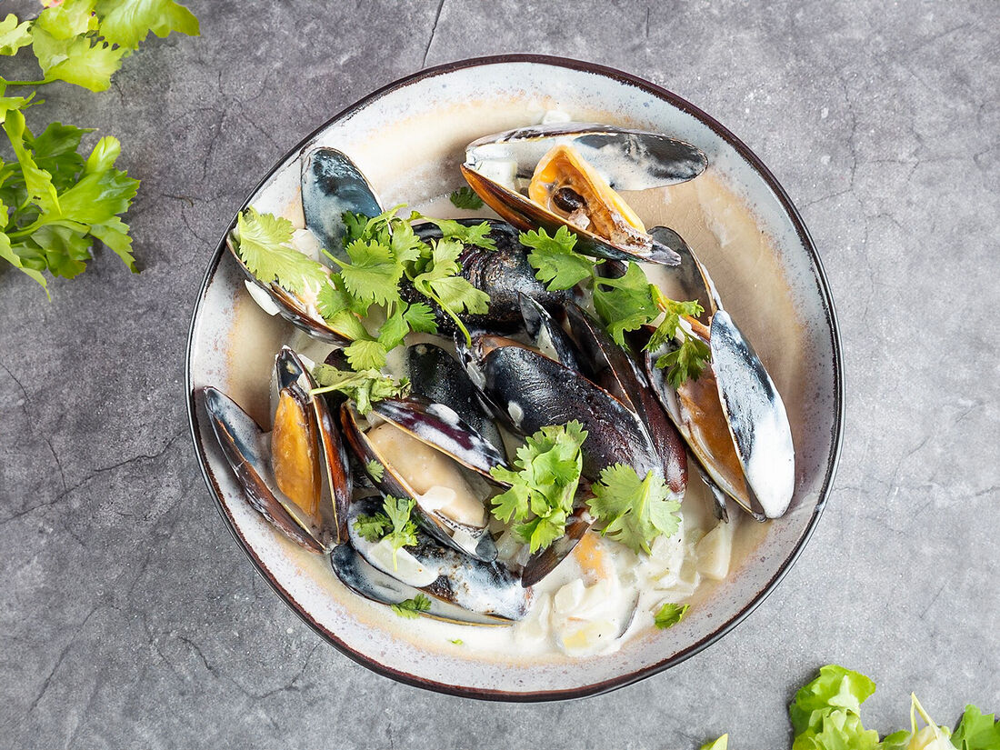 Мидии в сливочном соусе