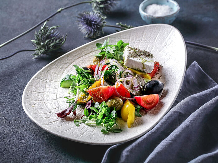 Греческий с гигантскими оливками и маслинами в греческом соусе