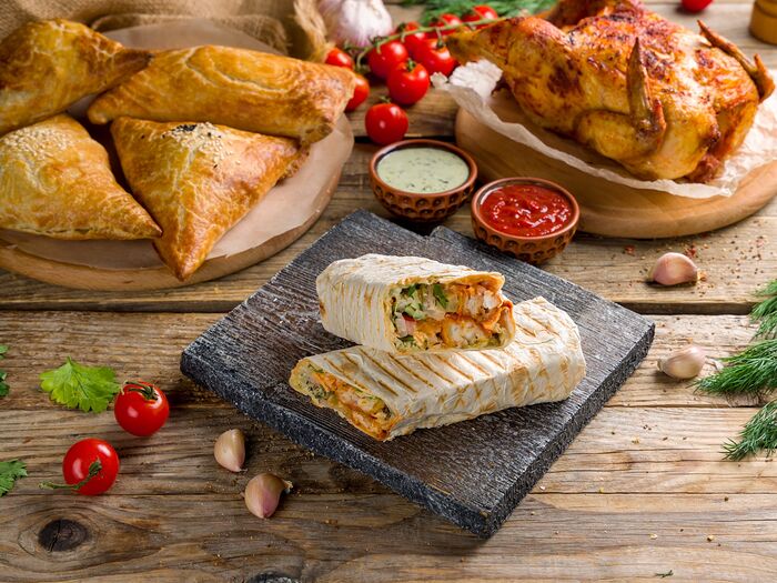 Мини-шаурма и куриные наггетсы