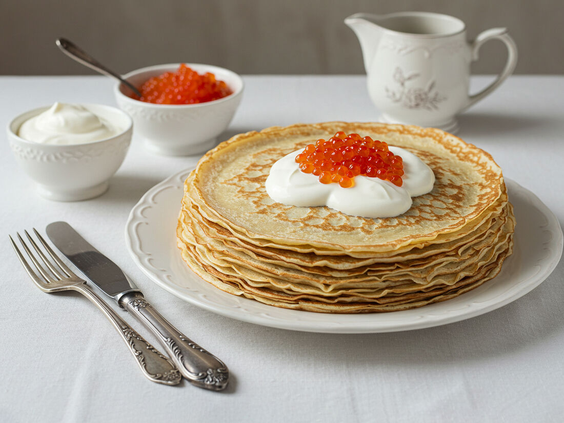 Блины с малиновым взваром и сметаною фермерской из Тулы