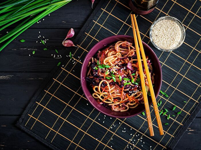 Вок с гречневой лапшой Соба, овощами и соусом
