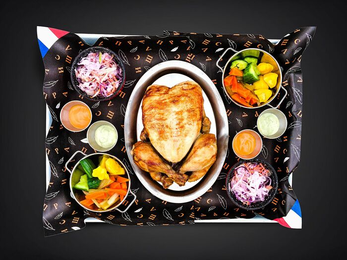 Целая курица гриль с двойным гарниром