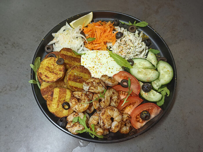 Салат с креветками гриль
