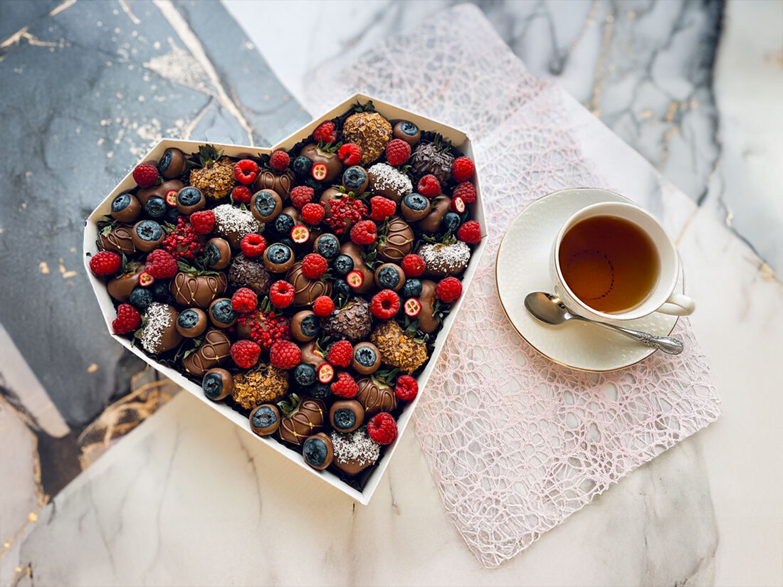 Набор Большое Сердце Клубники в шоколаде с добавлением свежей голубики