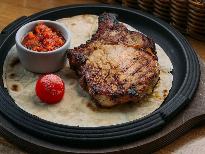 Стейк из свинины под соусом из шампиньонов