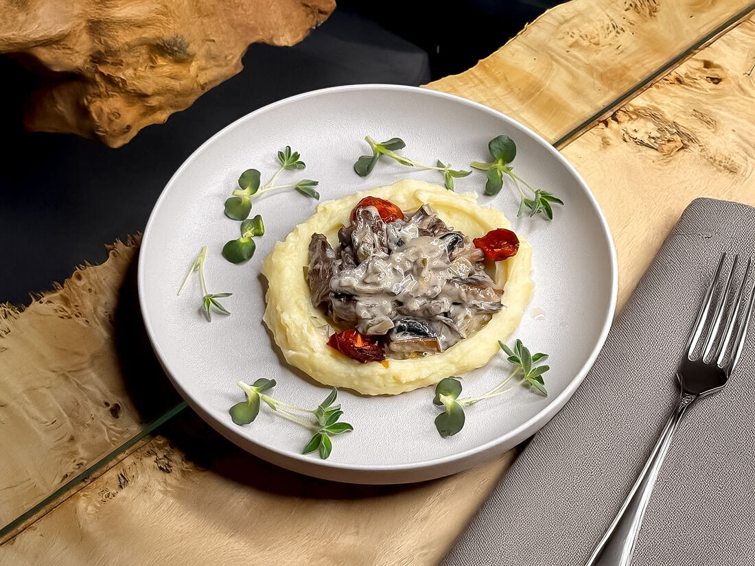 Бефстроганов с картофельным пюре