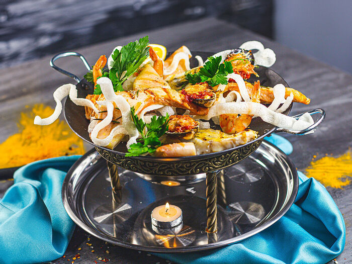 Паста с морским гребешком в сливочном соусе с добавлением пасты том-ям