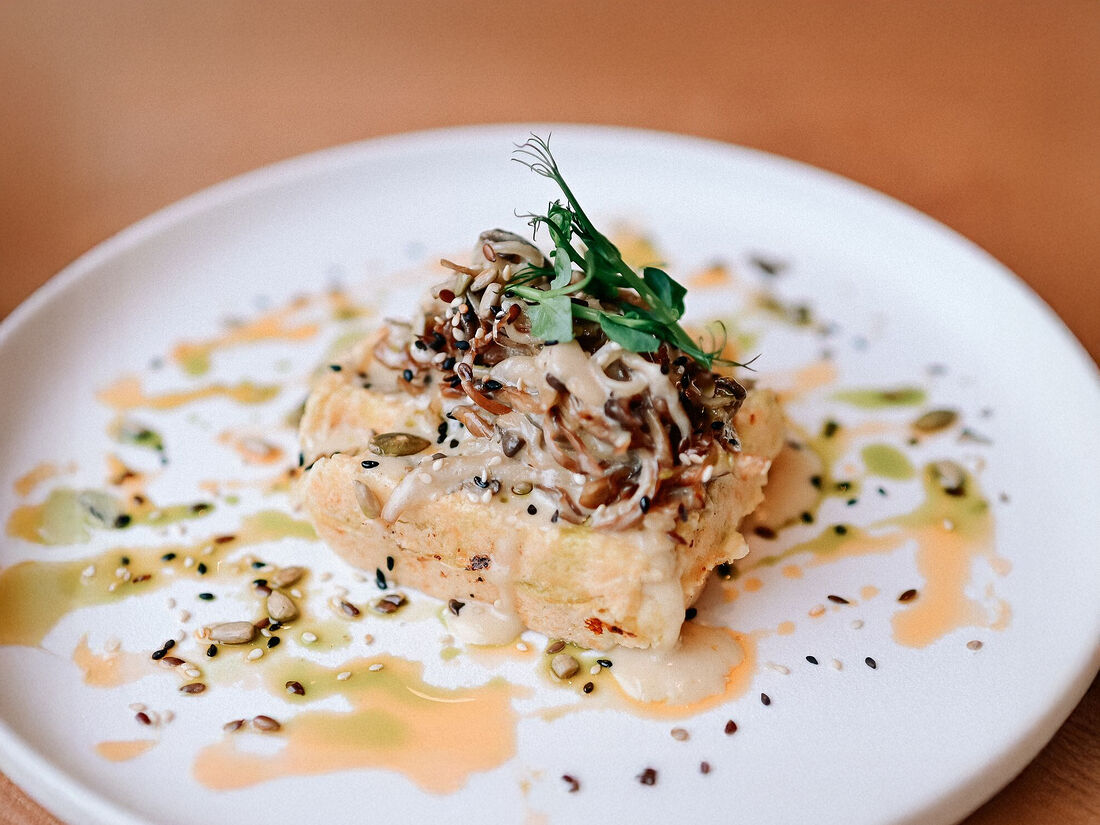 Трюфельный скрембл с хлебом на закваске и семенами