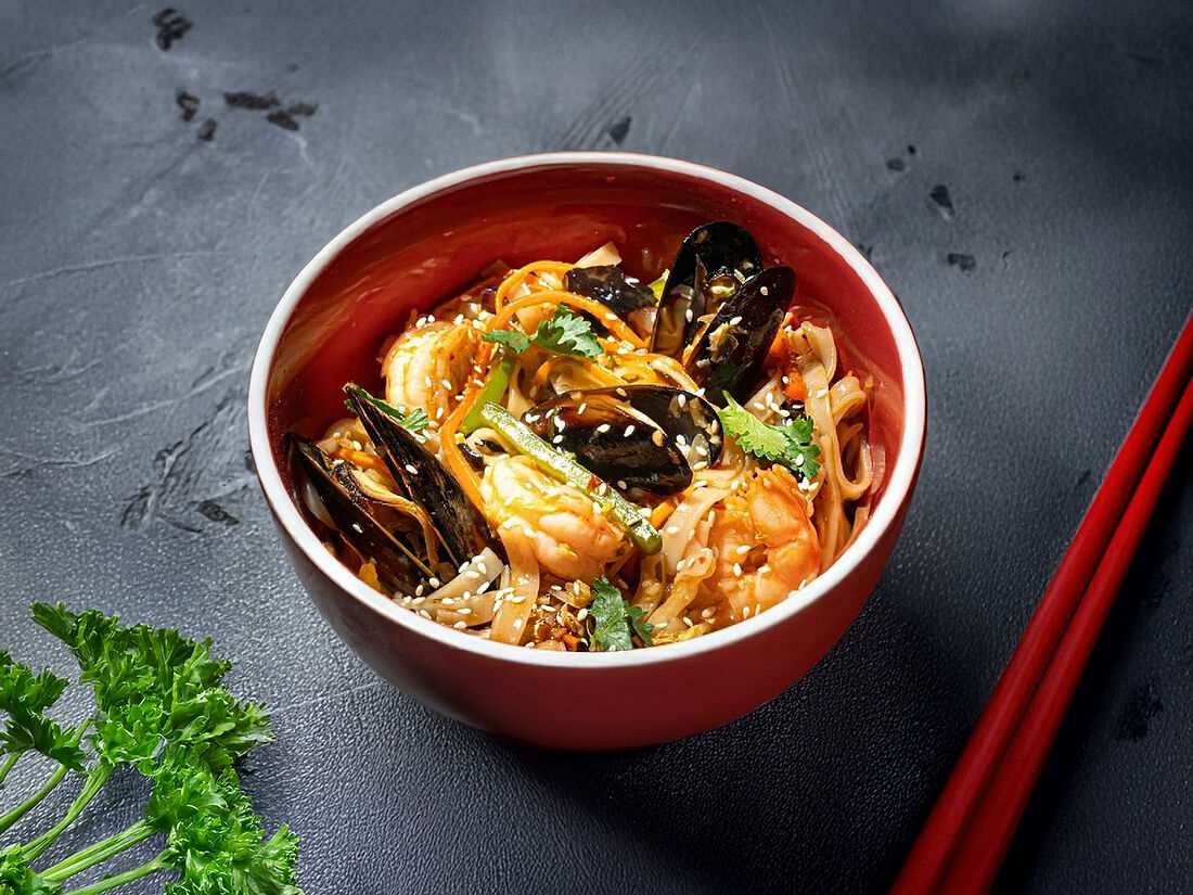 Рисовая лапша с морепродуктами