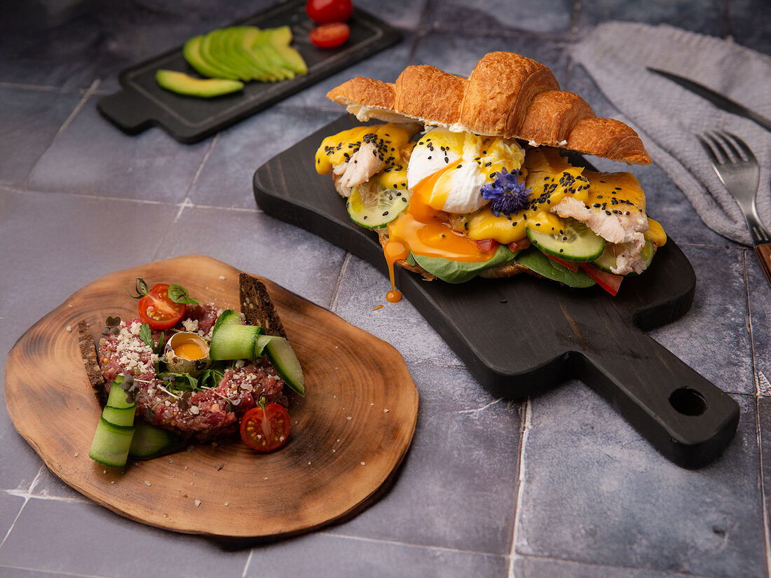 Бифштекс из мраморной говядины с яйцом пашот