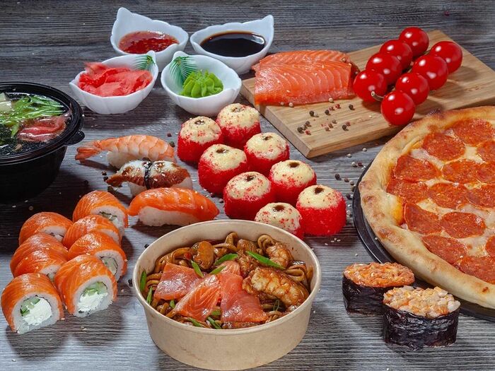 ЯпонскаяБургерыПиццаСушиСалатыВок