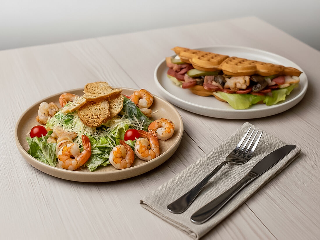 Вафли с рыбой и креветками