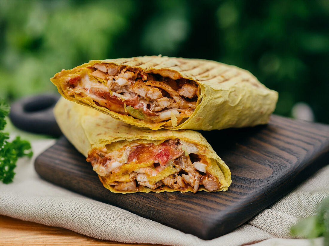 Шаурма в сырном лаваше с халапеньо