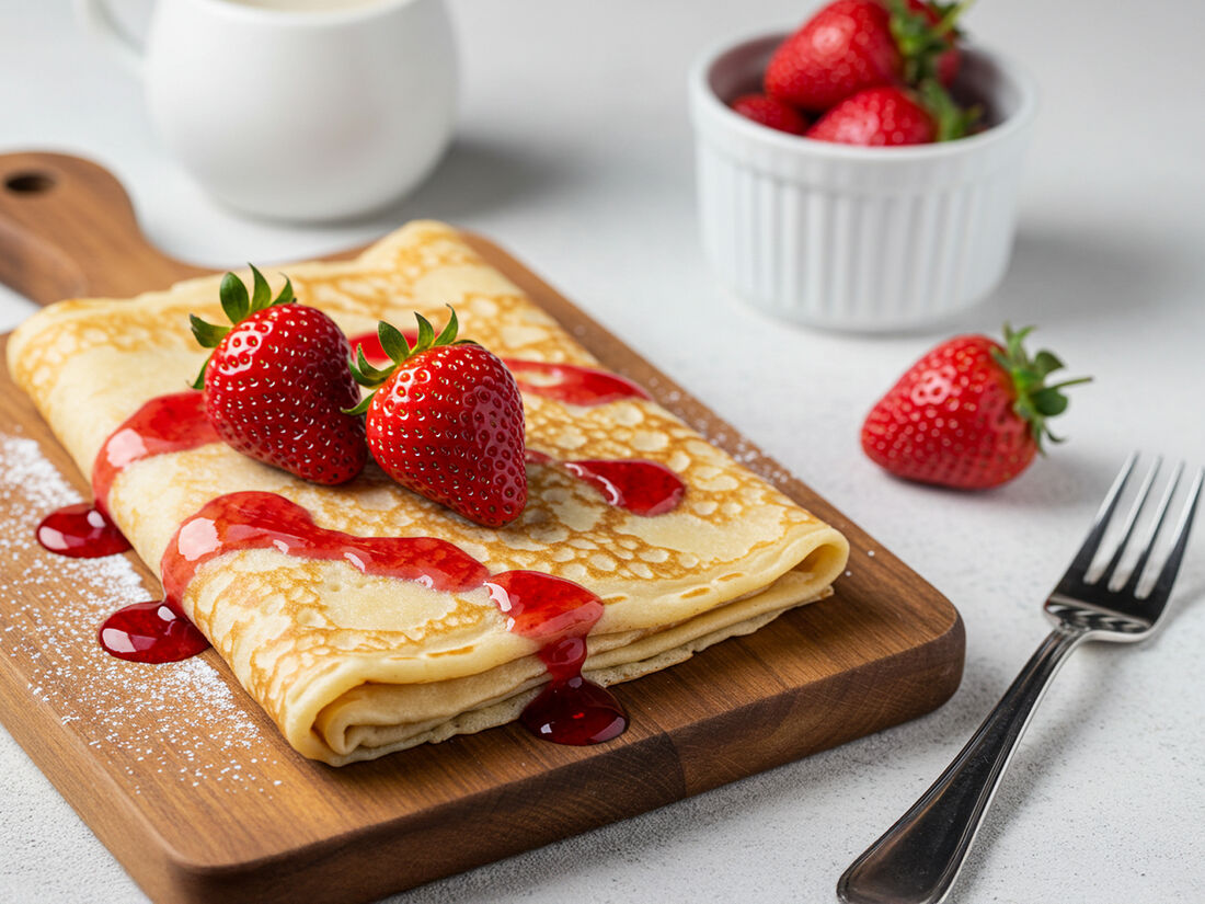Блинчики с клубнично-медовым соусом