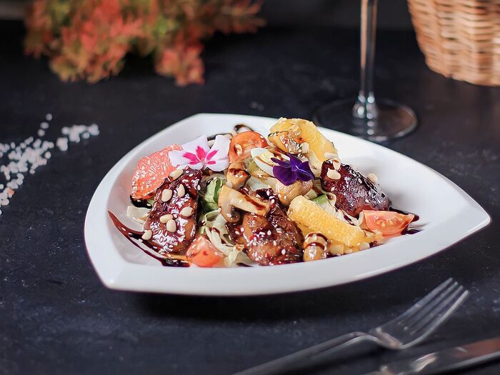 Салат из филе говядины с соусом терияки