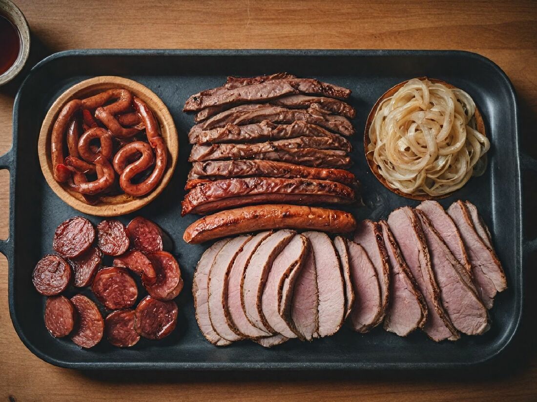 Стейк сэндвич BBQ с горчицей на свиной грудинке