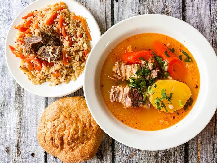 Шурпа с говядиной на густом бульоне