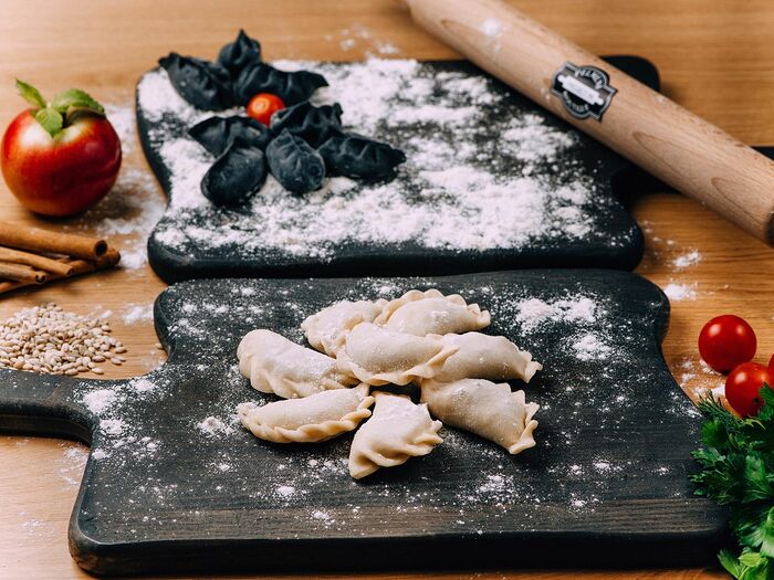 Пельмени с уткой и яблоками