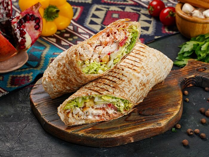 Шаурма куриная на углях в сырном лаваше