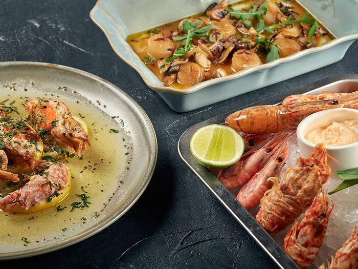 Лангустины с головой на гриле