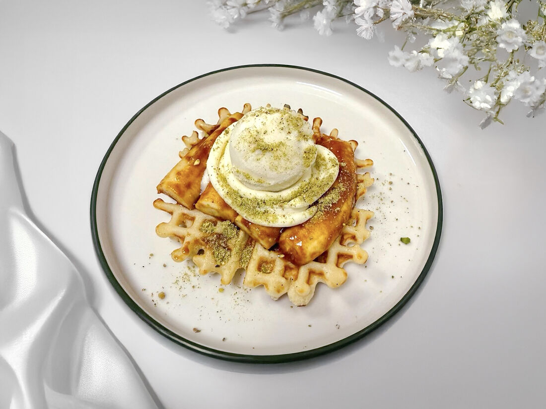 Вафли с бананом и карамелью