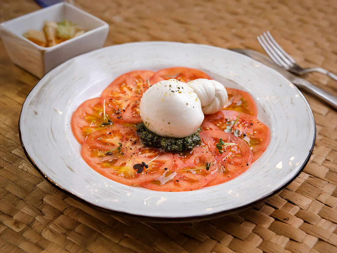 Карпаччо из томатов с бураттой