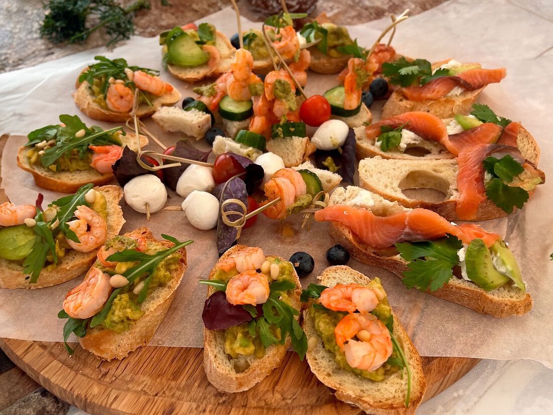 Брускетты с креветкой и вялеными томатами