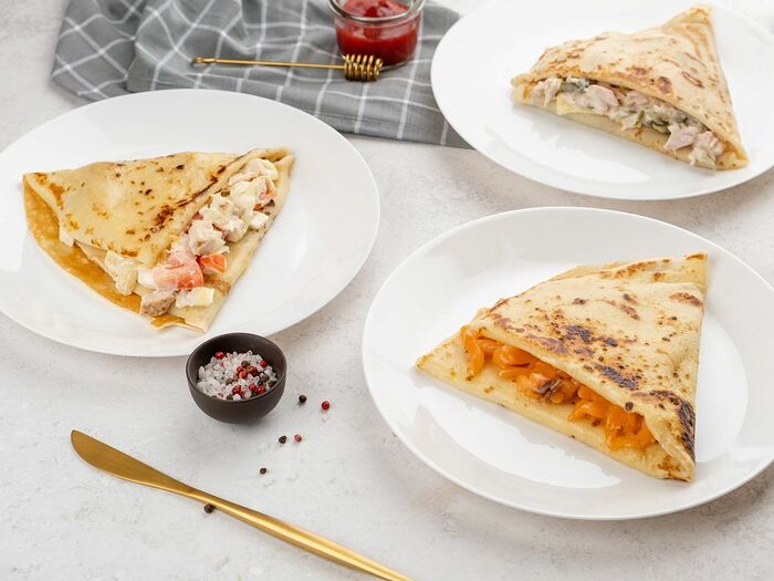 Комбо сытных блинов (3 блина и 3 соуса)