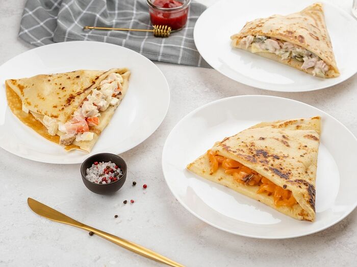 Блин с копченой грудкой и тостовым сыром