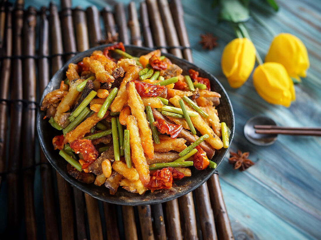 Жареная говядина соломкой с острым перцем