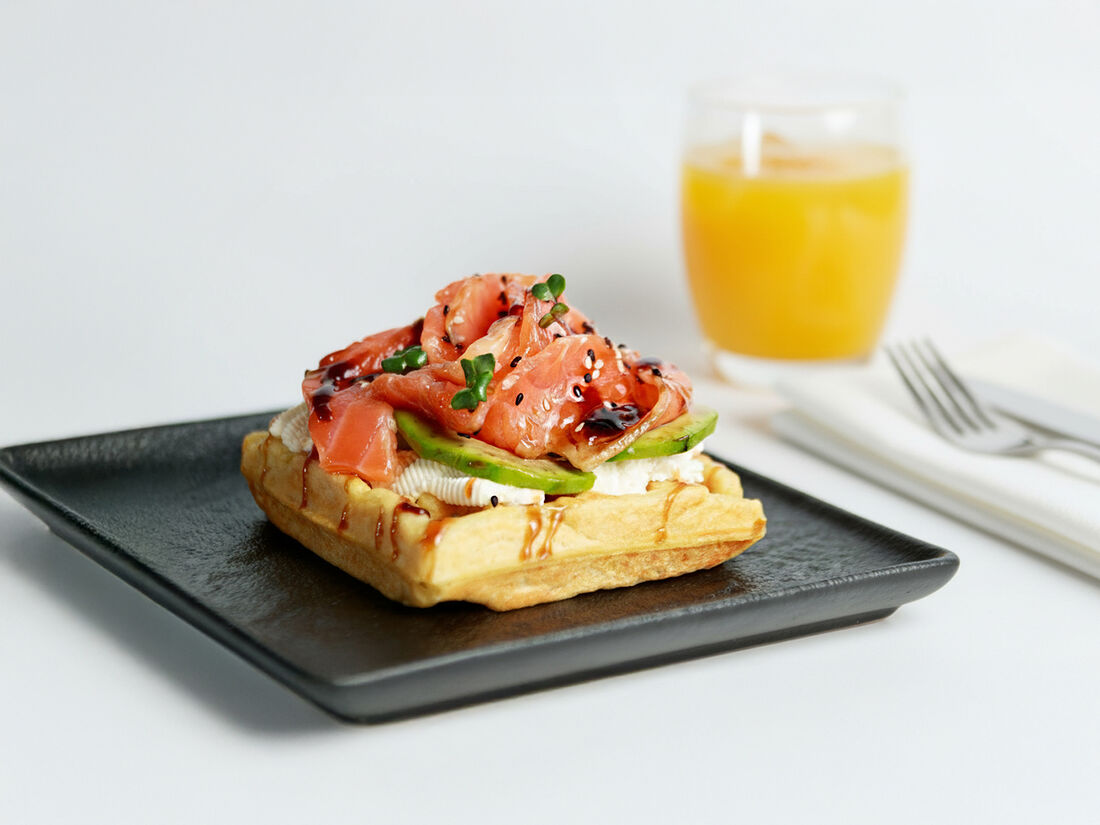Вафля с малосолёной сёмгой и авокадо