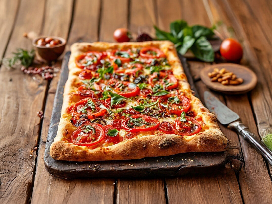 Римская пицца Домашняя с фаршем и маринованными огурчиками