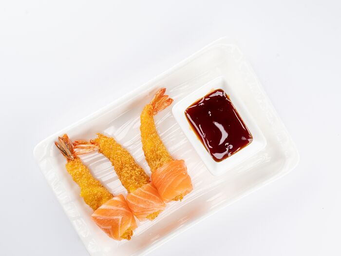 Жареные Креветки с лососем