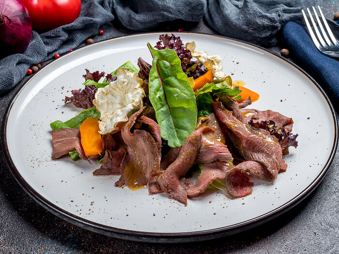 Теплый салат с ростбифом