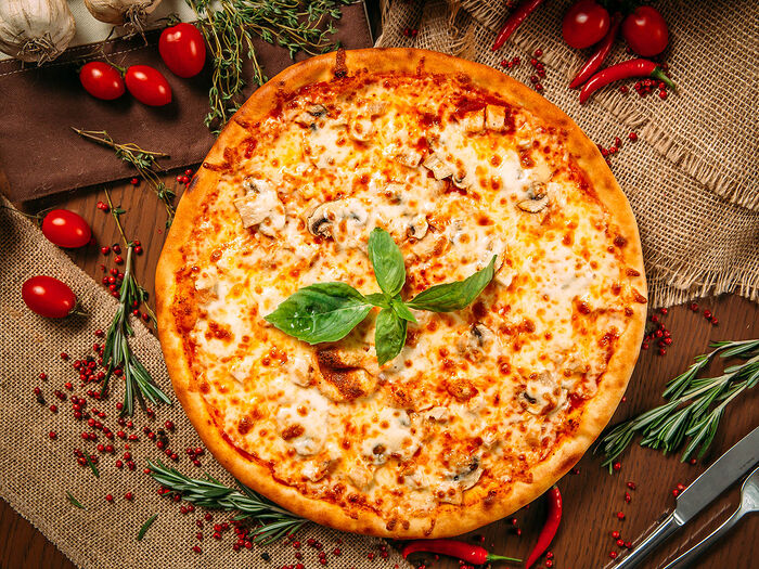 Пицца с сыром и грибами