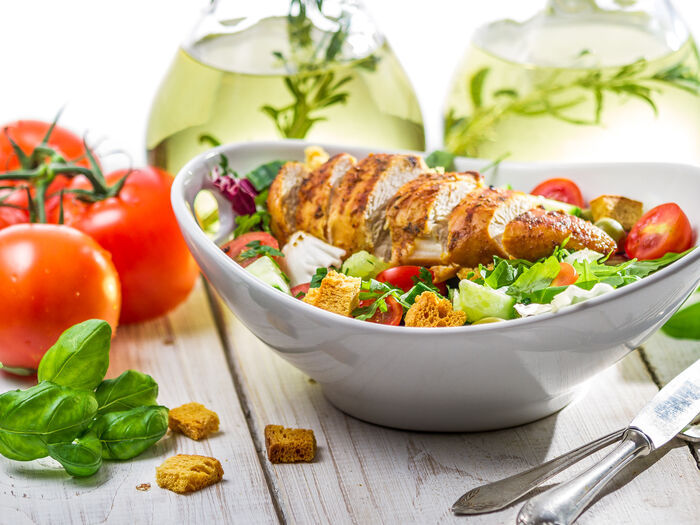 Цезарь с цыплёнком су-вид и яйцом пашот