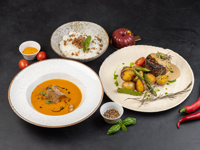 Крем-суп из чечевицы с копчёной уткой