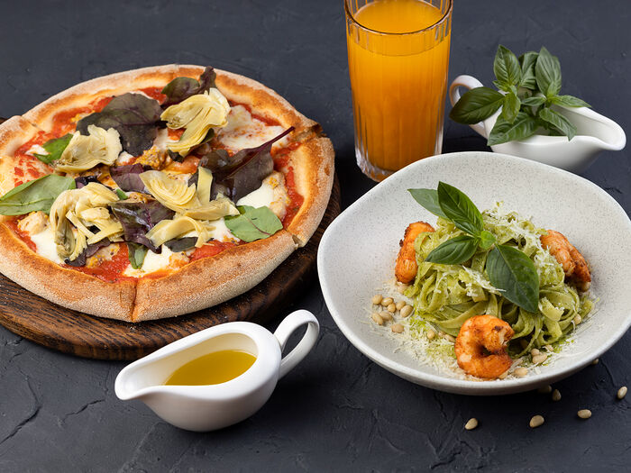 Пиццета Песто с креветками