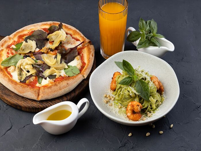 Пиццета Песто с креветками