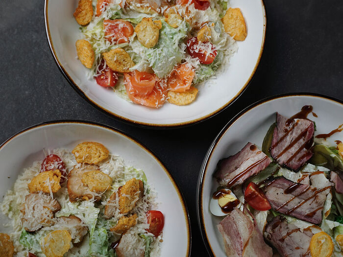 Салат Цезарь с лососем