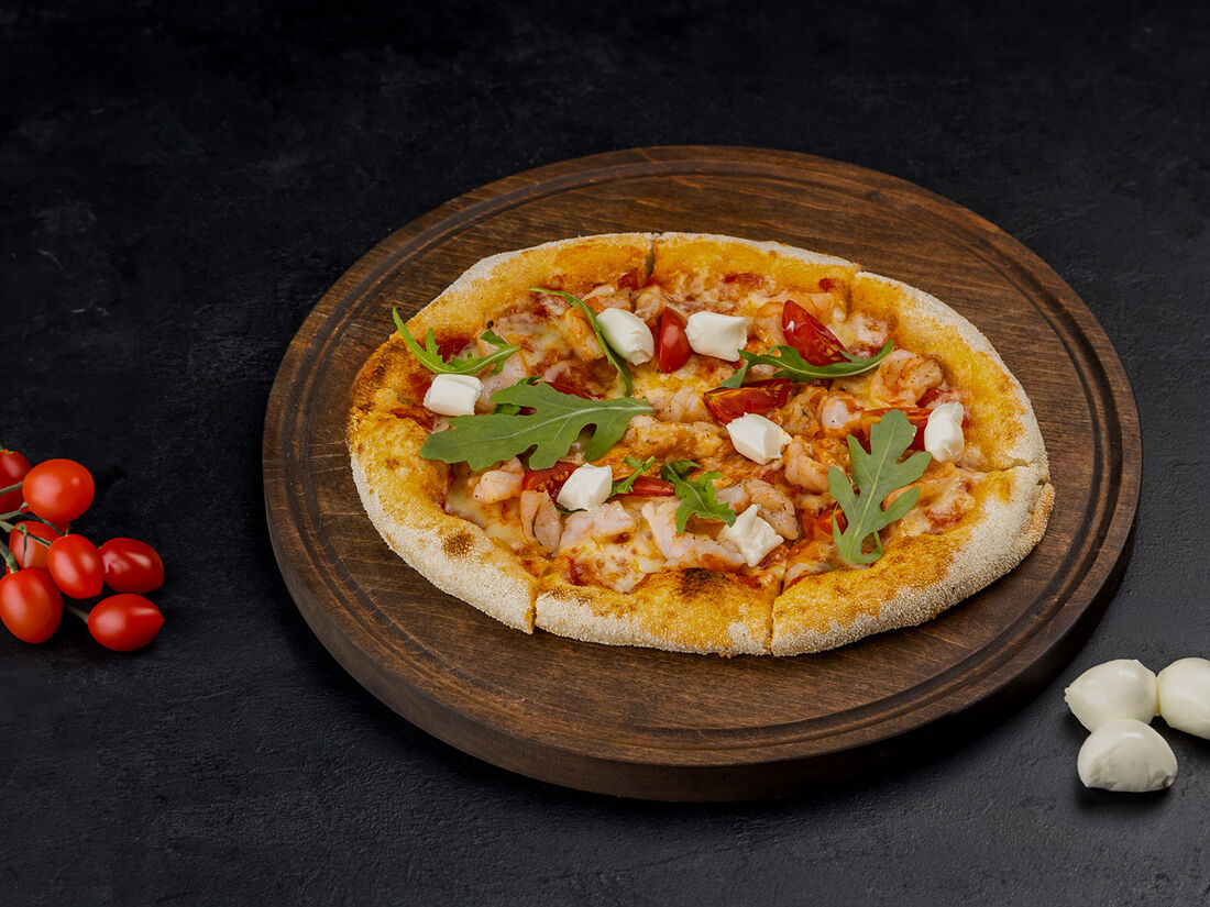 Пицца с креветками и сливочным сыром мини